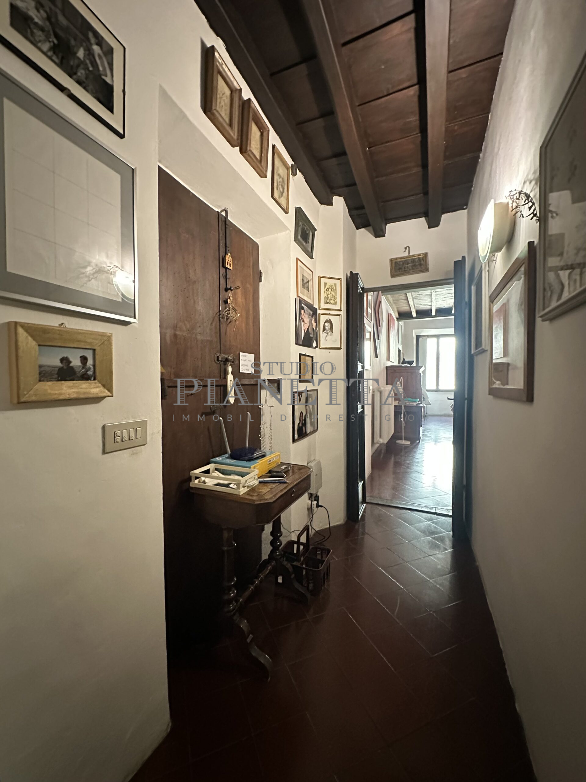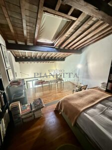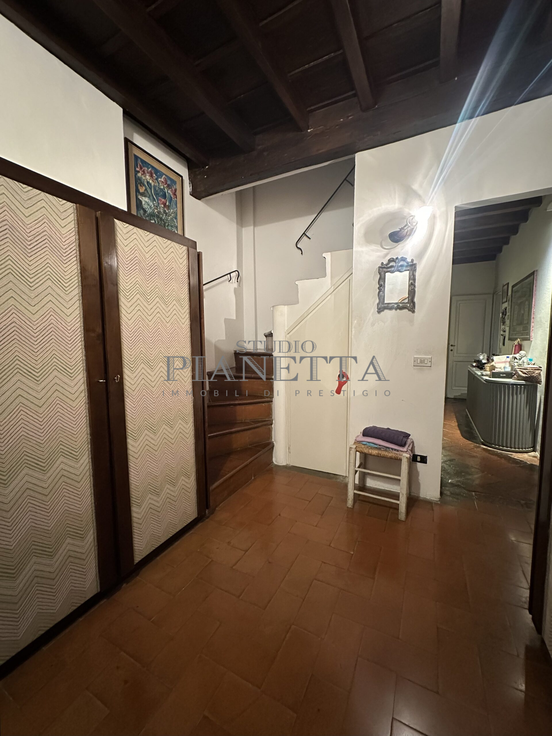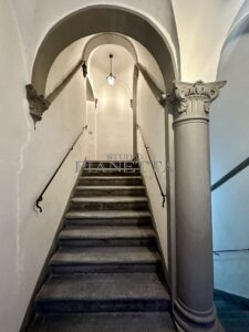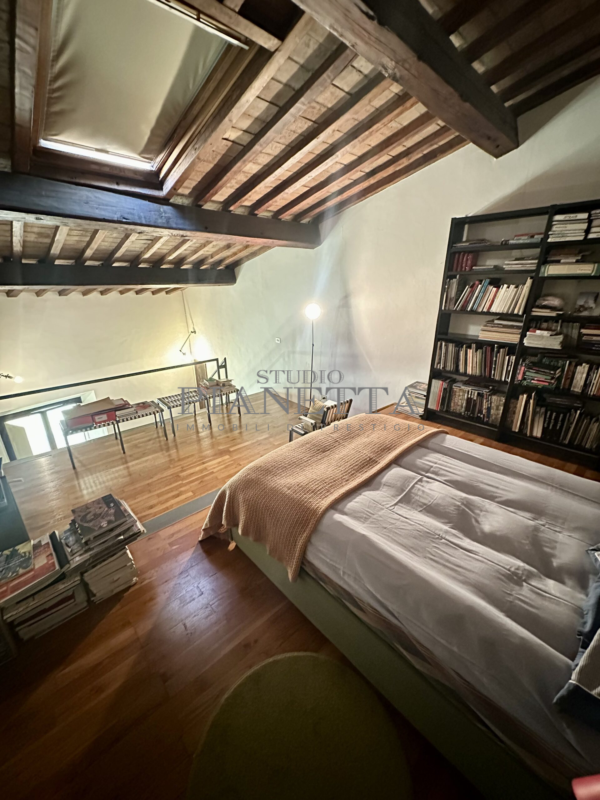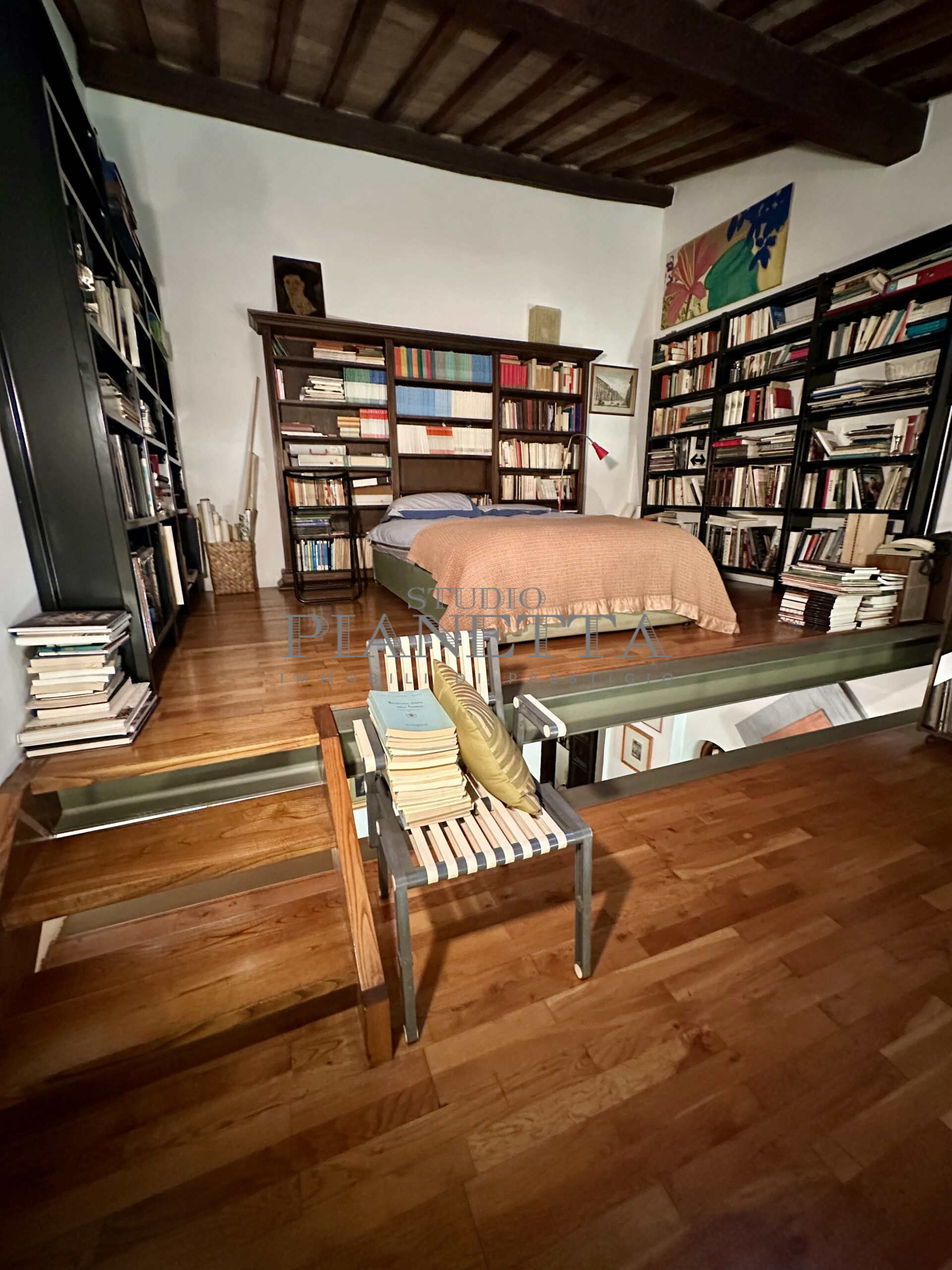 Oltrarno, in palazzo della Firenze granducale appartenuto ad un famoso architetto mediceo, al secondo e ultimo piano senza ascensore con comode e larghe scale in pietra serena, con capitelli e colonne ornate, importante appartamento della grandezza di 200 mq circa distribuiti su tre livelli con triplo ingresso. Gli ambienti sono grandi, caratteristici, con cotto antico e antichi soffitti a cassettoni. I salotti sono tre di cui due attualmente adibiti a grandi studi ma convertibili in camere, una piccola e intima sala da pranzo, una cucina e un bagno. Al piano mezzanino si trova un’ulteriore camera indipendente con accesso separato, mentre ad un altro ampio vano di passaggio si accede al piano superiore dove troviamo due camere da letto matrimoniali e un bagno en suite. L’appartamento e’ corredato anche da una grande soffitta praticabile. L’appartamento si presenta in buone condizioni di manutenzione.