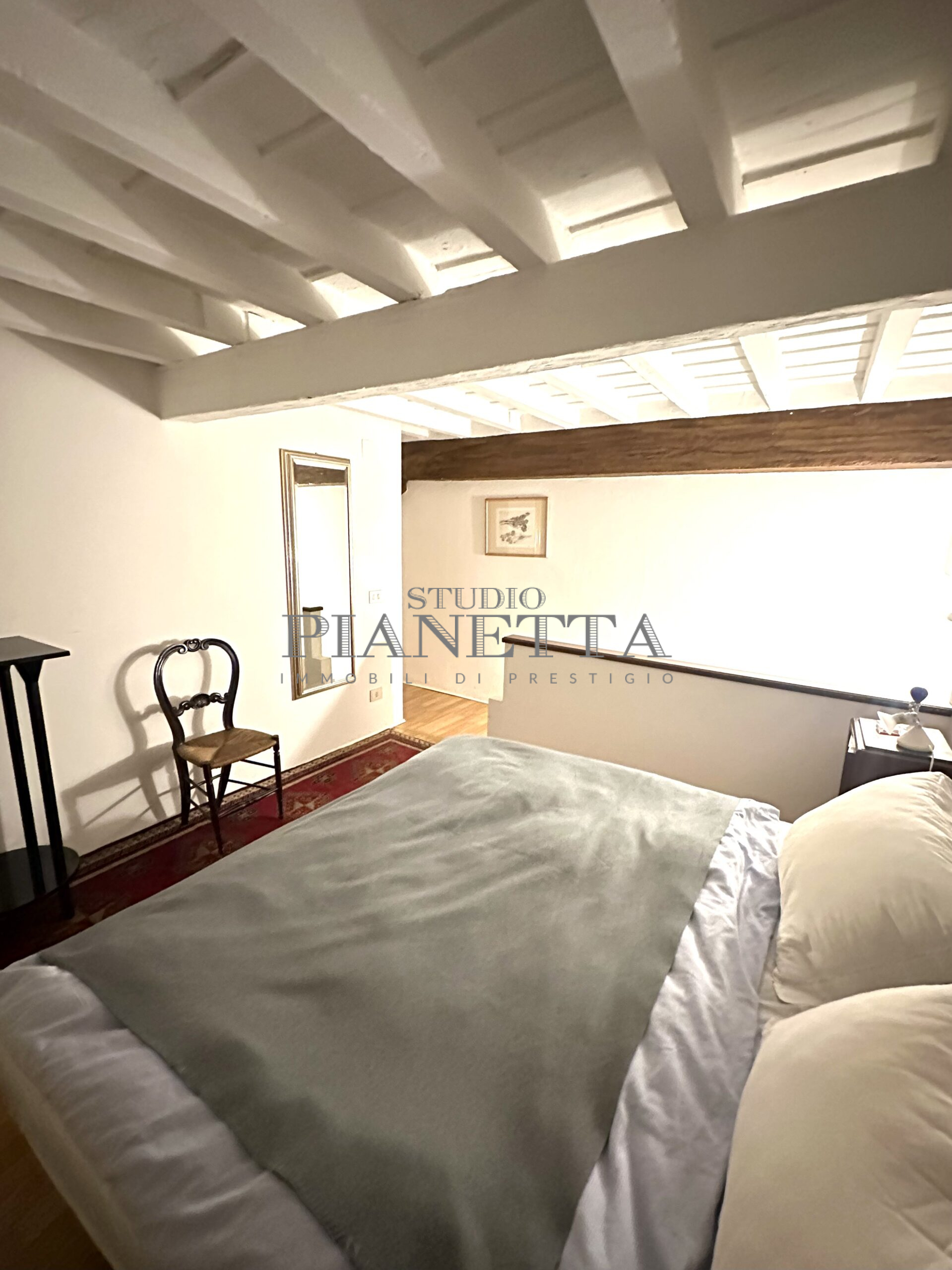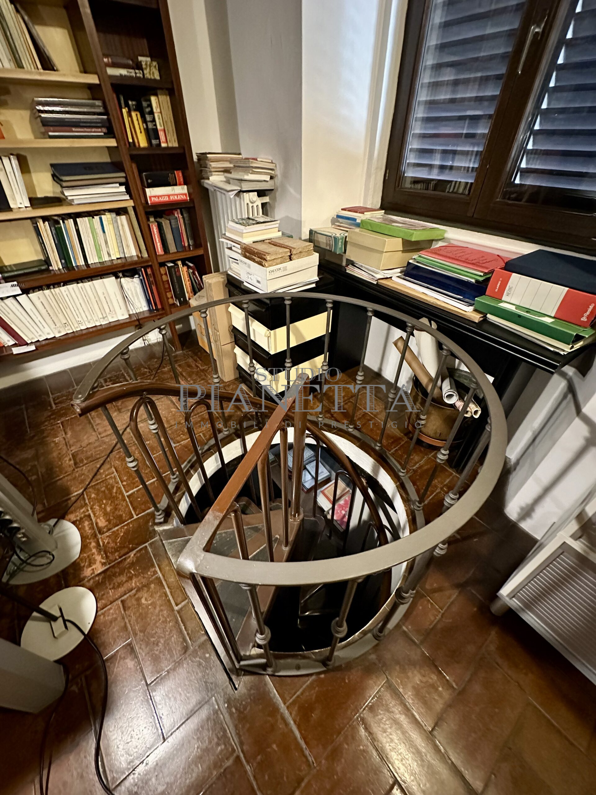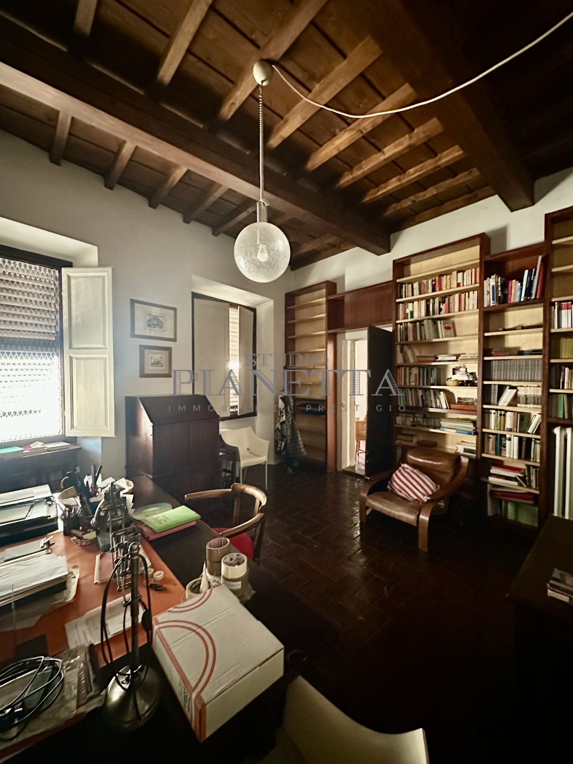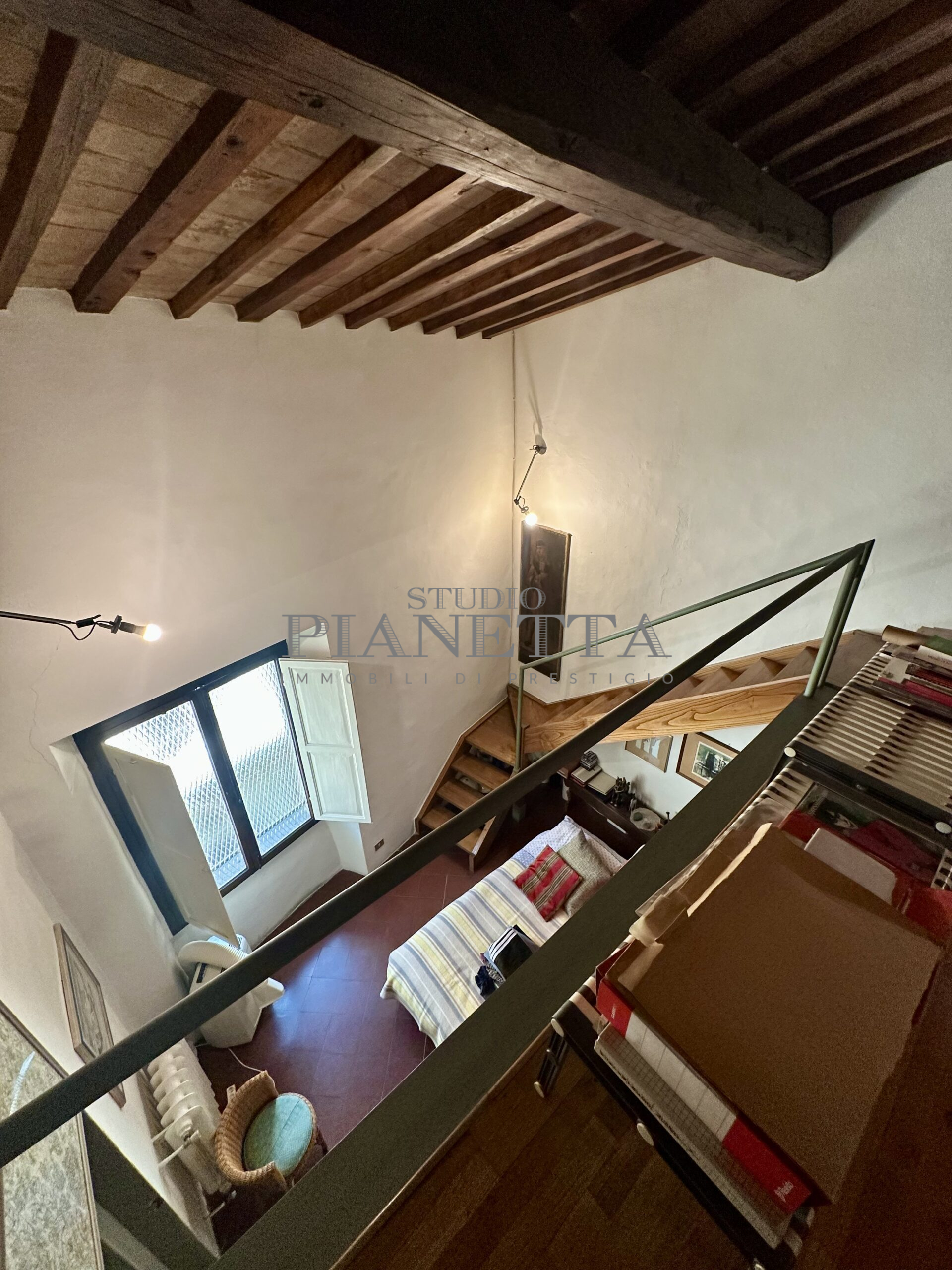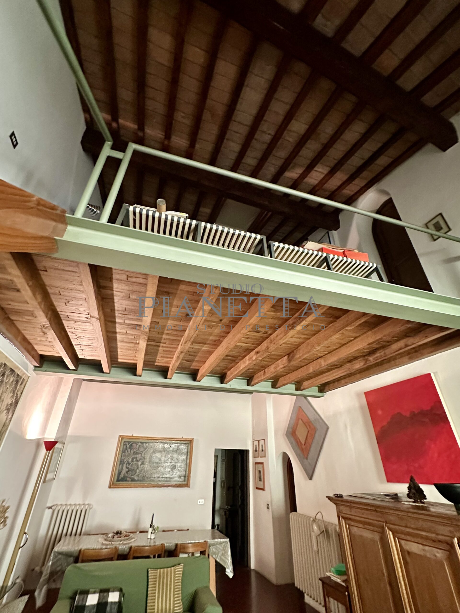 Oltrarno, in palazzo della Firenze granducale appartenuto ad un famoso architetto mediceo, al secondo e ultimo piano senza ascensore con comode e larghe scale in pietra serena, con capitelli e colonne ornate, importante appartamento della grandezza di 200 mq circa distribuiti su tre livelli con triplo ingresso. Gli ambienti sono grandi, caratteristici, con cotto antico e antichi soffitti a cassettoni. I salotti sono tre di cui due attualmente adibiti a grandi studi ma convertibili in camere, una piccola e intima sala da pranzo, una cucina e un bagno. Al piano mezzanino si trova un’ulteriore camera indipendente con accesso separato, mentre ad un altro ampio vano di passaggio si accede al piano superiore dove troviamo due camere da letto matrimoniali e un bagno en suite. L’appartamento e’ corredato anche da una grande soffitta praticabile. L’appartamento si presenta in buone condizioni di manutenzione.