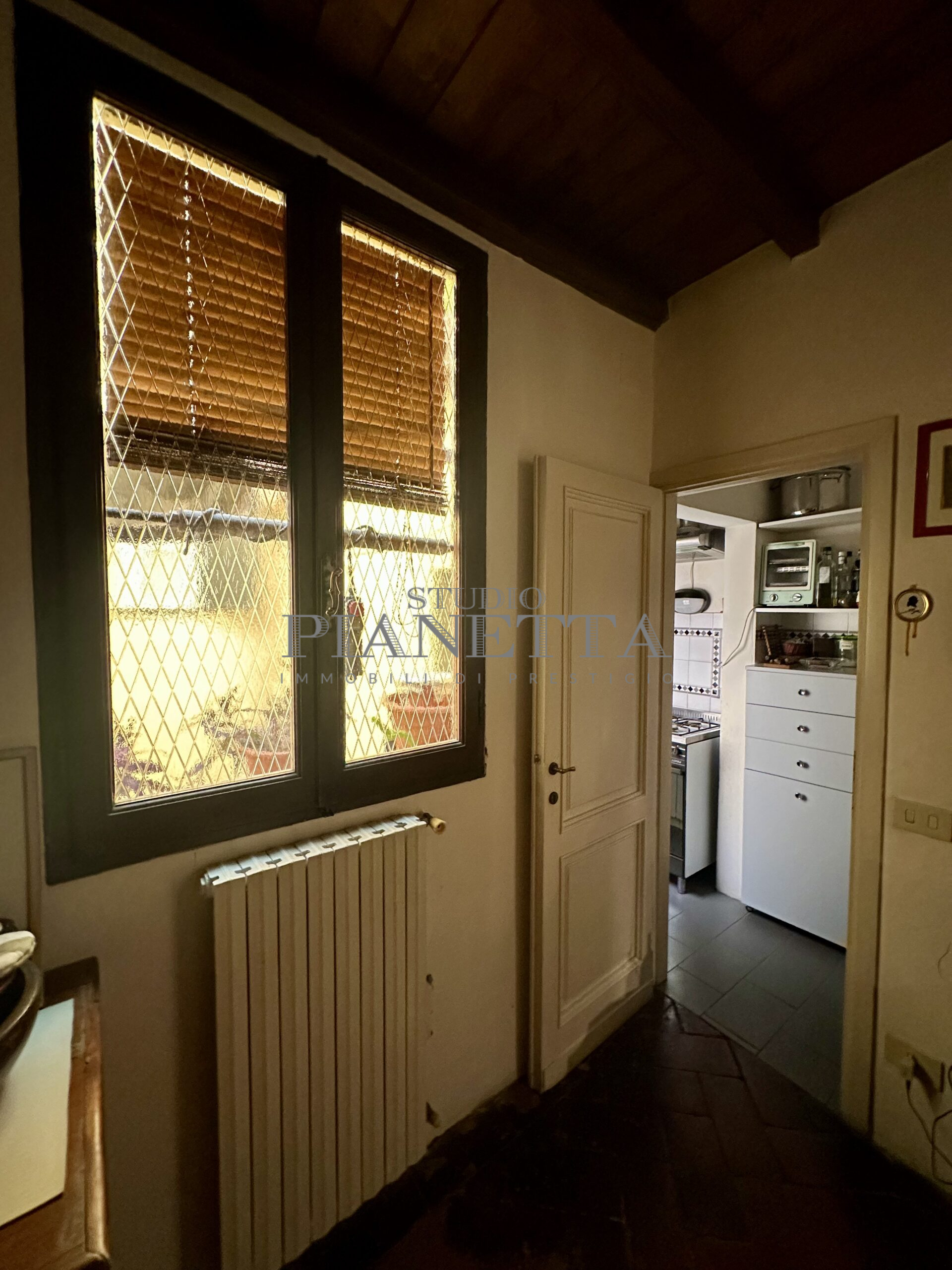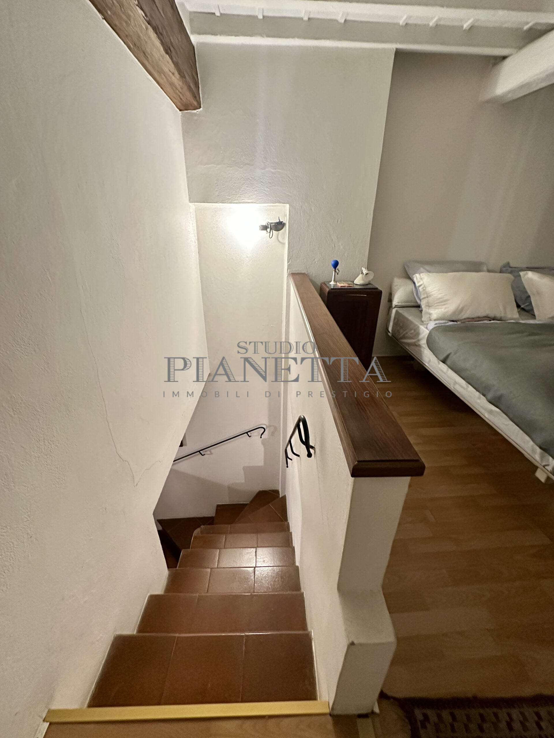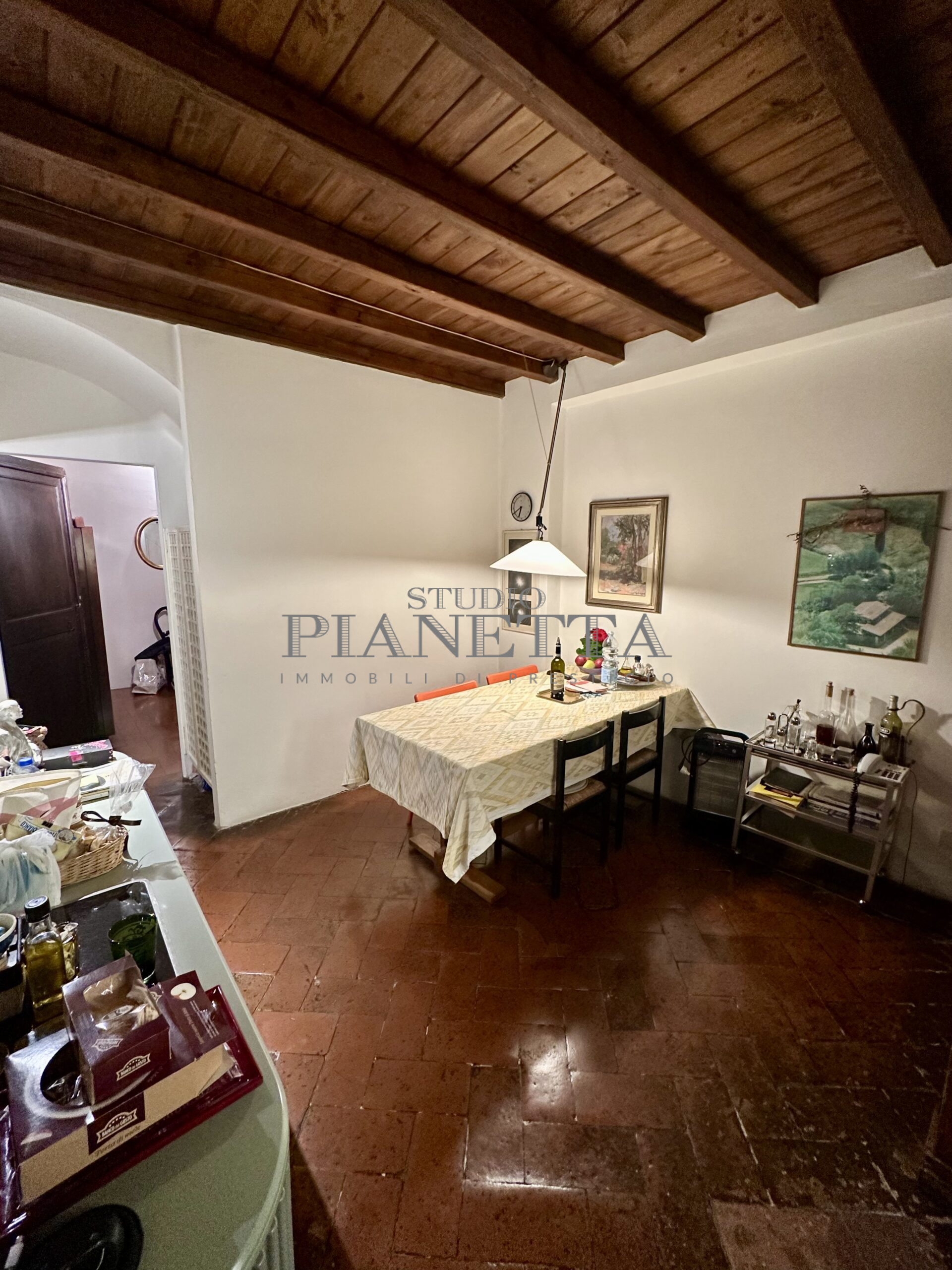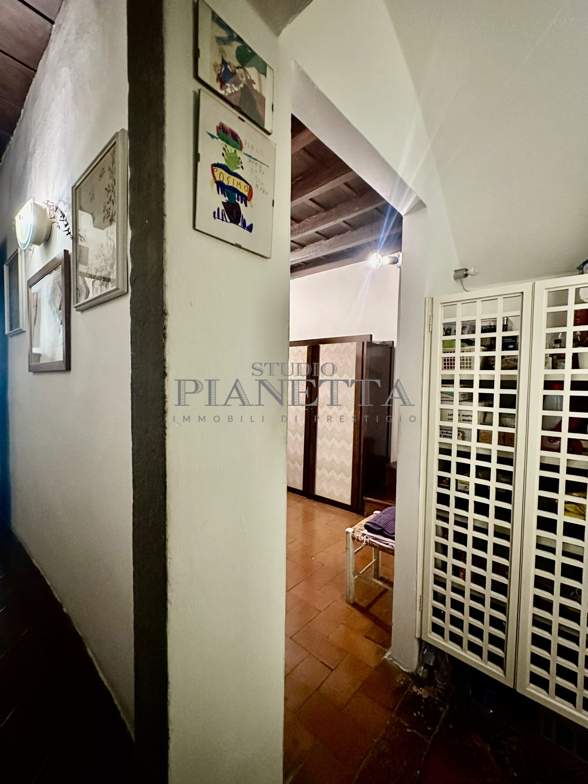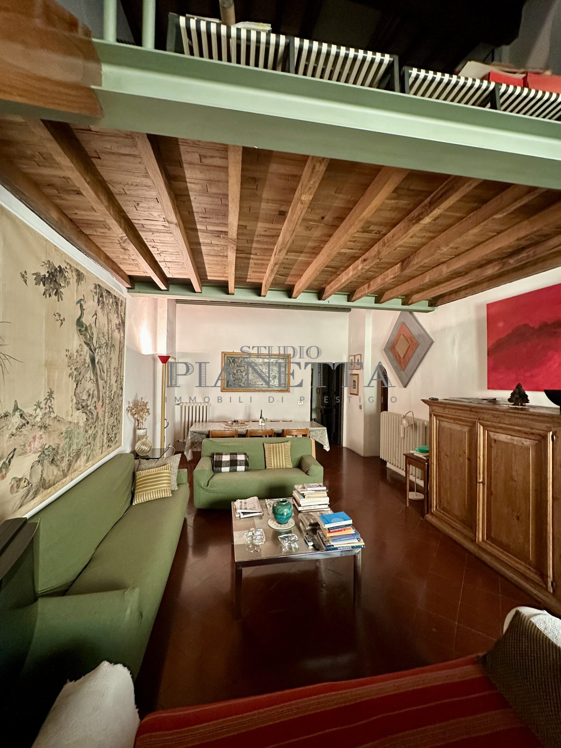 Oltrarno, in palazzo della Firenze granducale appartenuto ad un famoso architetto mediceo, al secondo e ultimo piano senza ascensore con comode e larghe scale in pietra serena, con capitelli e colonne ornate, importante appartamento della grandezza di 200 mq circa distribuiti su tre livelli con triplo ingresso. Gli ambienti sono grandi, caratteristici, con cotto antico e antichi soffitti a cassettoni. I salotti sono tre di cui due attualmente adibiti a grandi studi ma convertibili in camere, una piccola e intima sala da pranzo, una cucina e un bagno. Al piano mezzanino si trova un’ulteriore camera indipendente con accesso separato, mentre ad un altro ampio vano di passaggio si accede al piano superiore dove troviamo due camere da letto matrimoniali e un bagno en suite. L’appartamento e’ corredato anche da una grande soffitta praticabile. L’appartamento si presenta in buone condizioni di manutenzione.