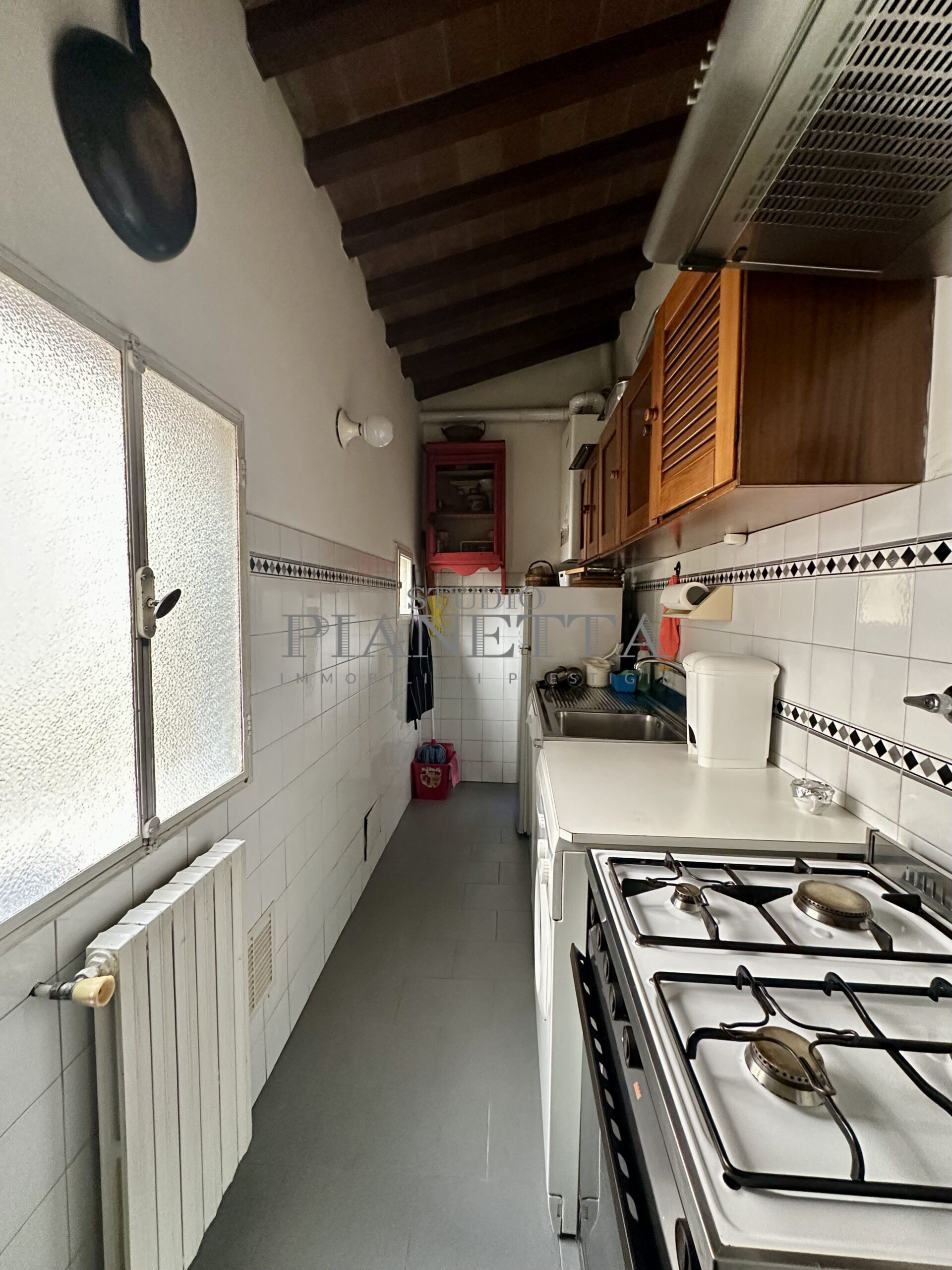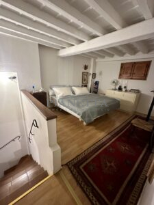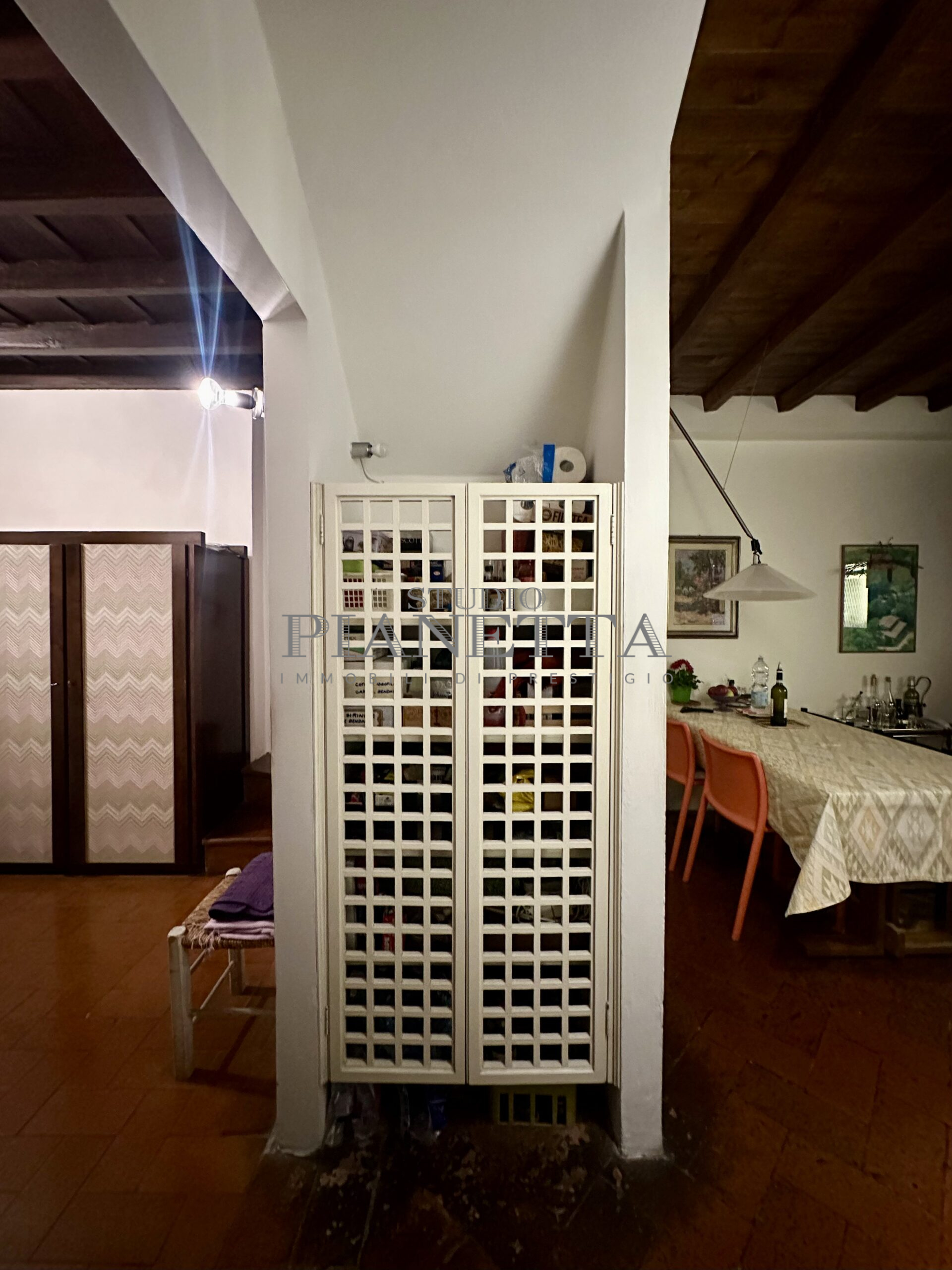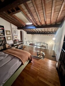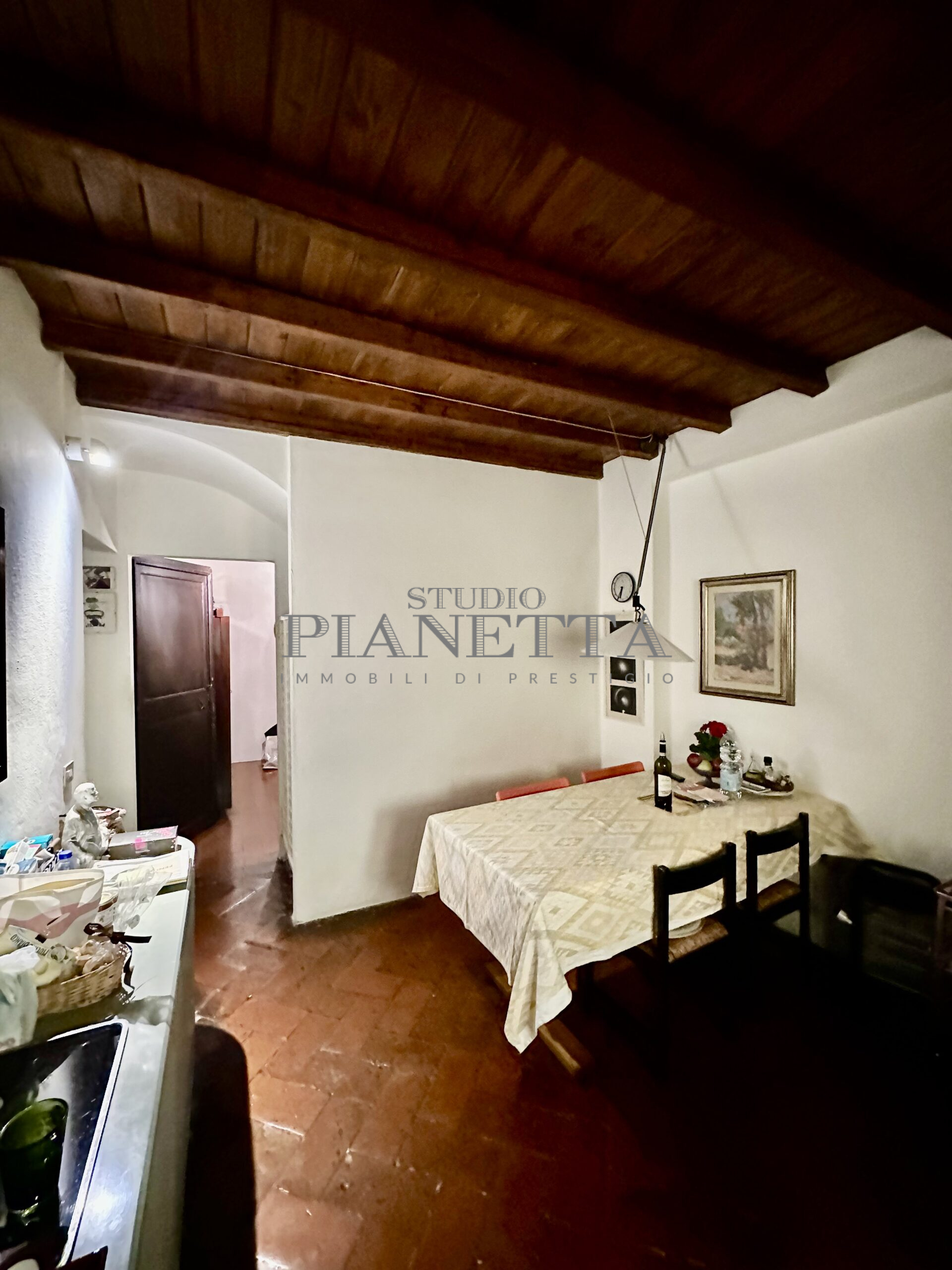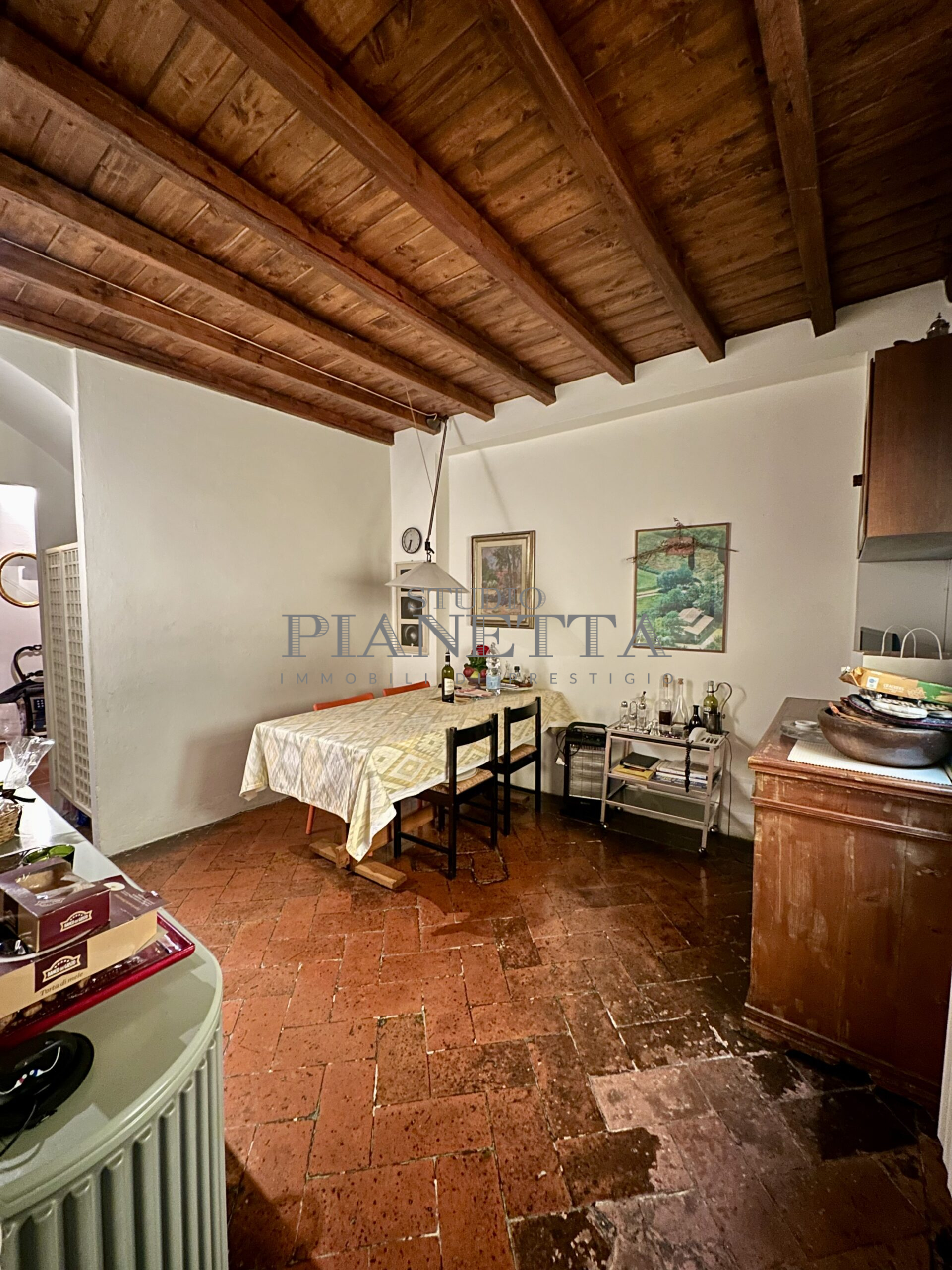 Oltrarno, in palazzo della Firenze granducale appartenuto ad un famoso architetto mediceo, al secondo e ultimo piano senza ascensore con comode e larghe scale in pietra serena, con capitelli e colonne ornate, importante appartamento della grandezza di 200 mq circa distribuiti su tre livelli con triplo ingresso. Gli ambienti sono grandi, caratteristici, con cotto antico e antichi soffitti a cassettoni. I salotti sono tre di cui due attualmente adibiti a grandi studi ma convertibili in camere, una piccola e intima sala da pranzo, una cucina e un bagno. Al piano mezzanino si trova un’ulteriore camera indipendente con accesso separato, mentre ad un altro ampio vano di passaggio si accede al piano superiore dove troviamo due camere da letto matrimoniali e un bagno en suite. L’appartamento e’ corredato anche da una grande soffitta praticabile. L’appartamento si presenta in buone condizioni di manutenzione.