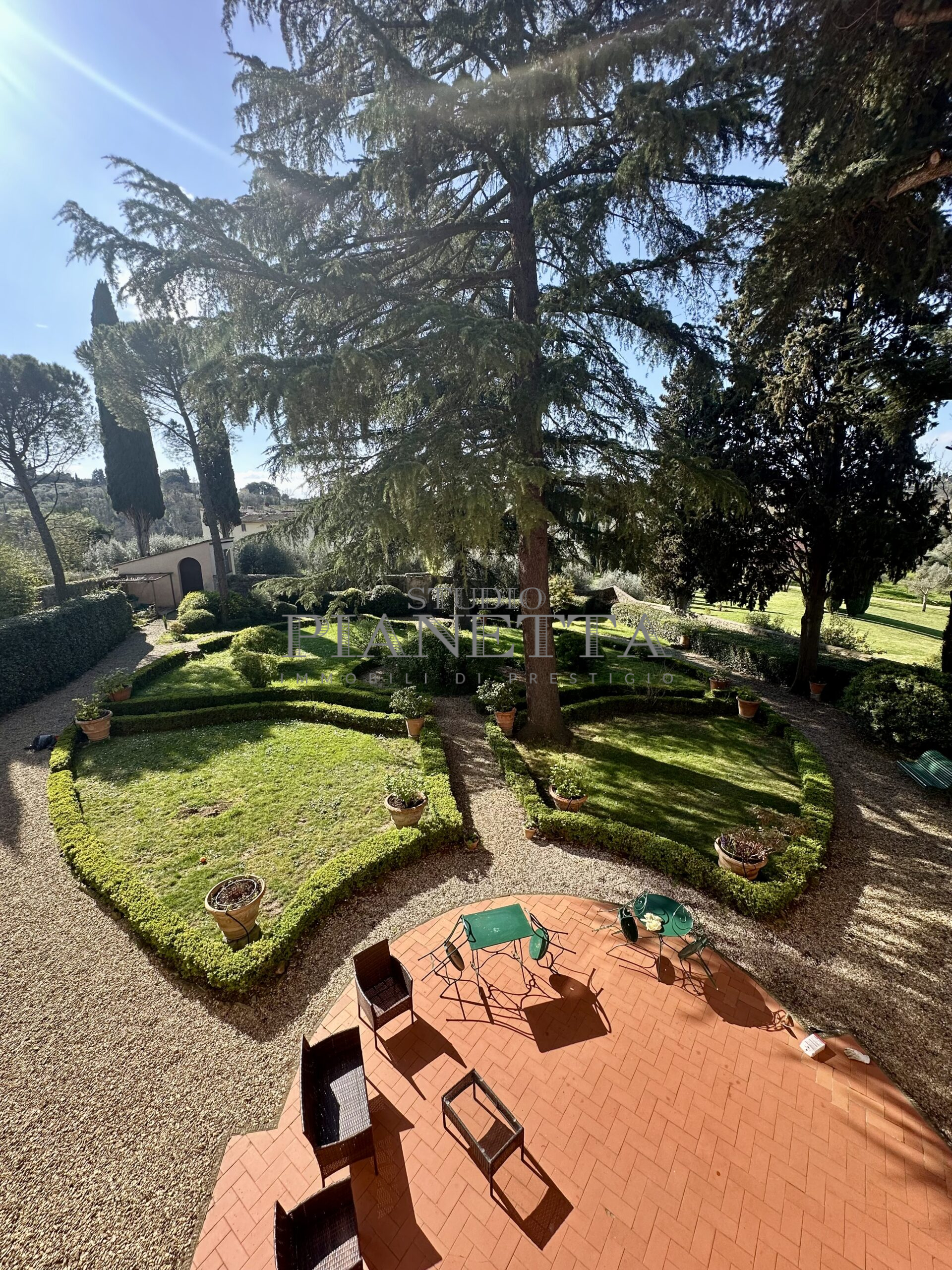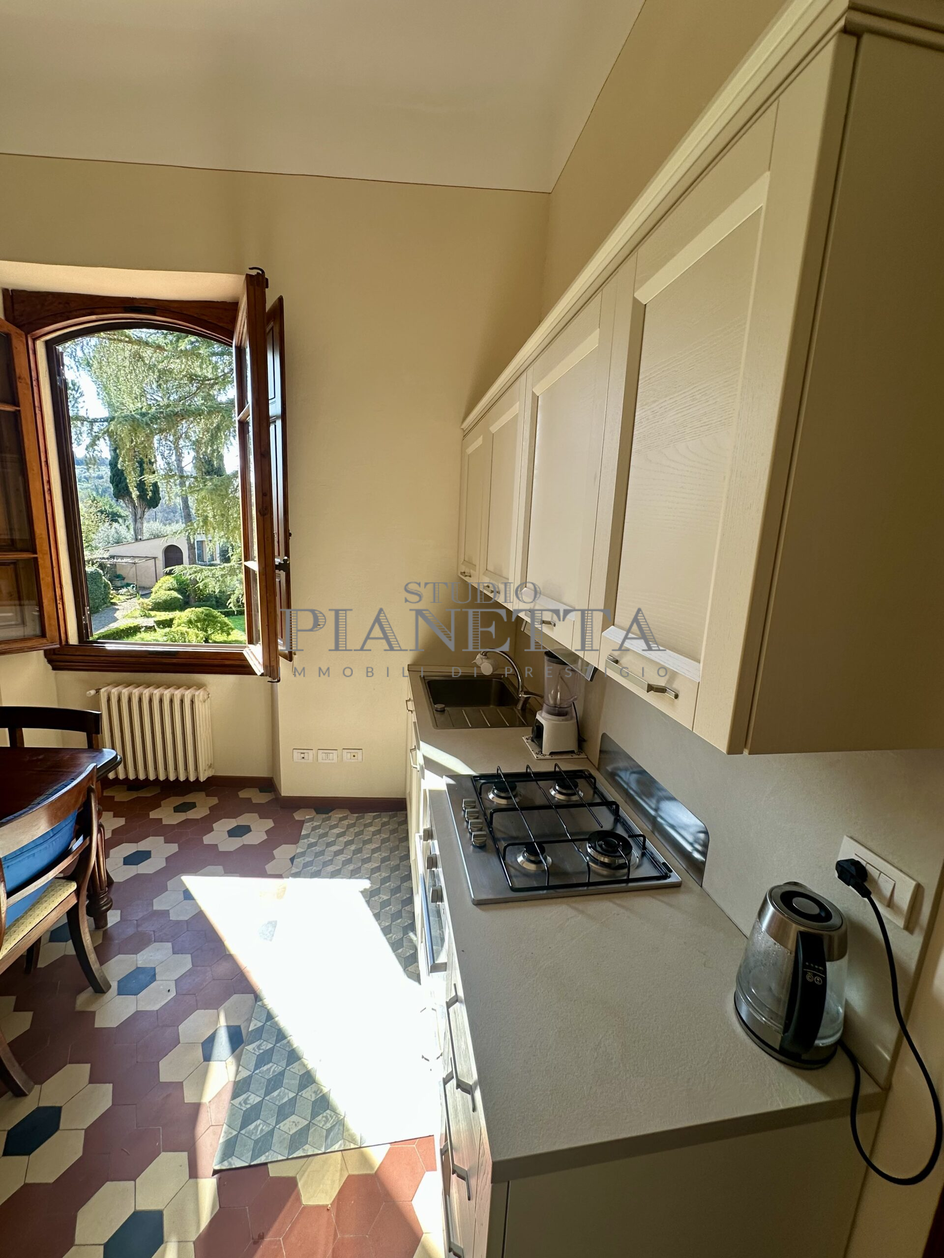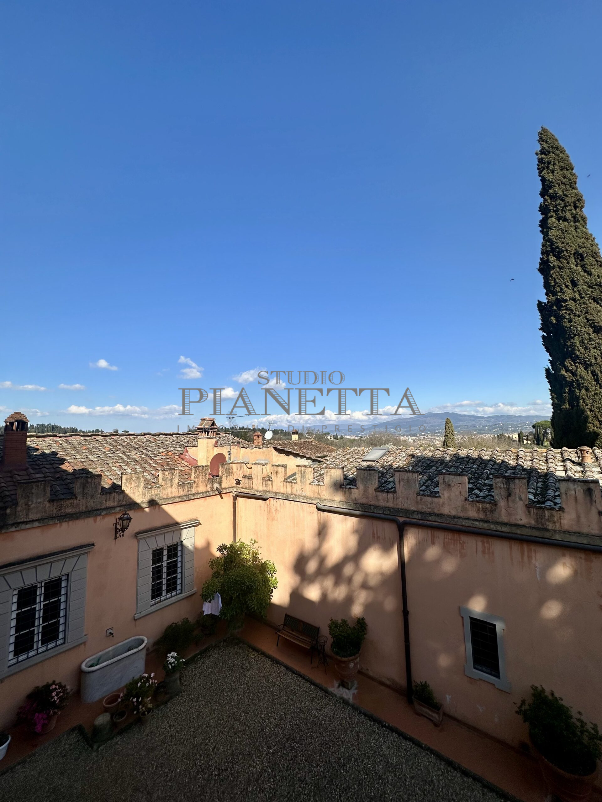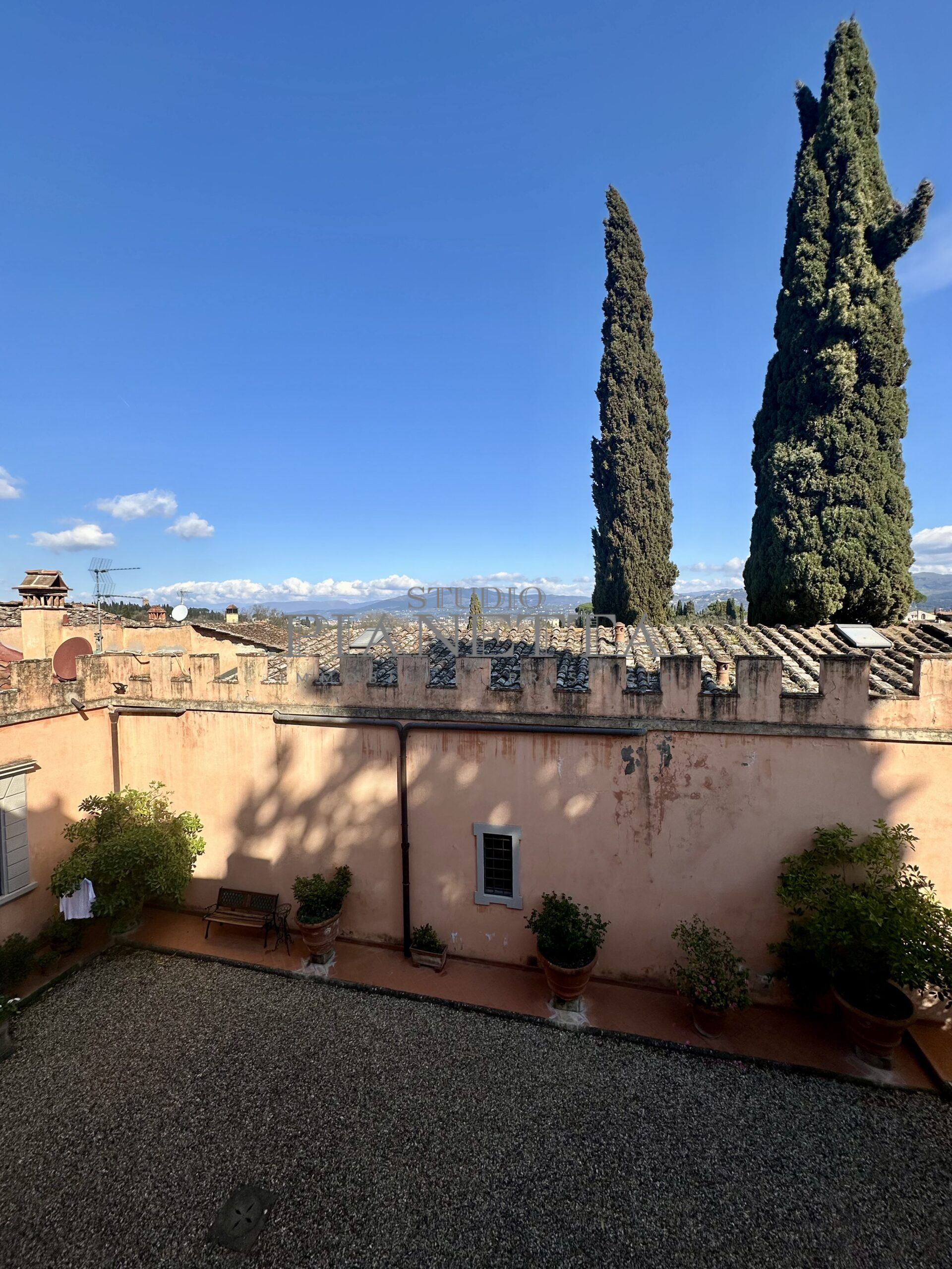 Disponibile da Aprile. Nei pressi del Pian de’ Giullari, affittasi elegante appartamento posto al primo piano di un'importante villa storica, finemente arredato con preziosi mobili d’epoca, pavimenti decorati, dotato di molta luce, con uno splendido e vasto panorama sulla città e sui suoi monumenti. L'immobile si compone di salone doppio, due camere matrimoniali ciascuna con bagno en suite e guardaroba, una camera singola, una grande cucina abitabile fornita di ogni accessorio con elettrodomestici di qualità. Completano l'immobile un terrazza panoramica abitabile, un giardino di uso esclusivo e posti auto. Termo singolo e fornito di sistema di aria condizionata. Sono richiesti solo clienti referenziatissimi e con reddito dimostrabile. No subaffitto.