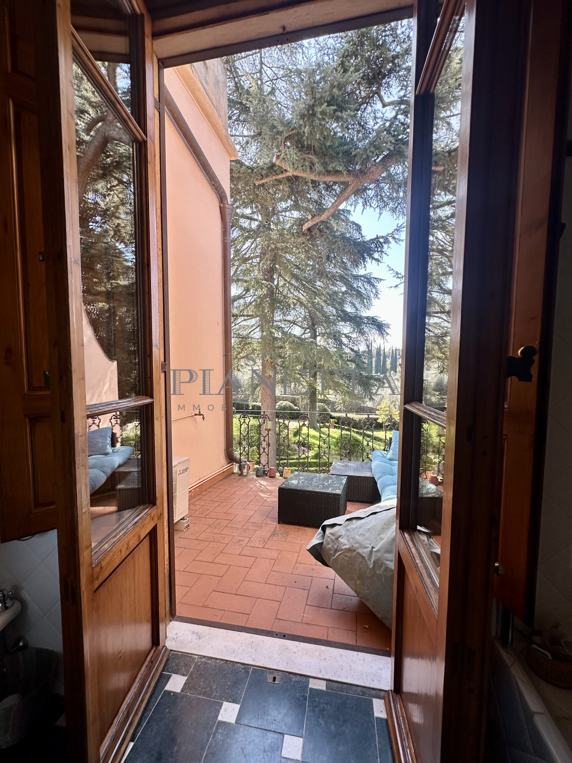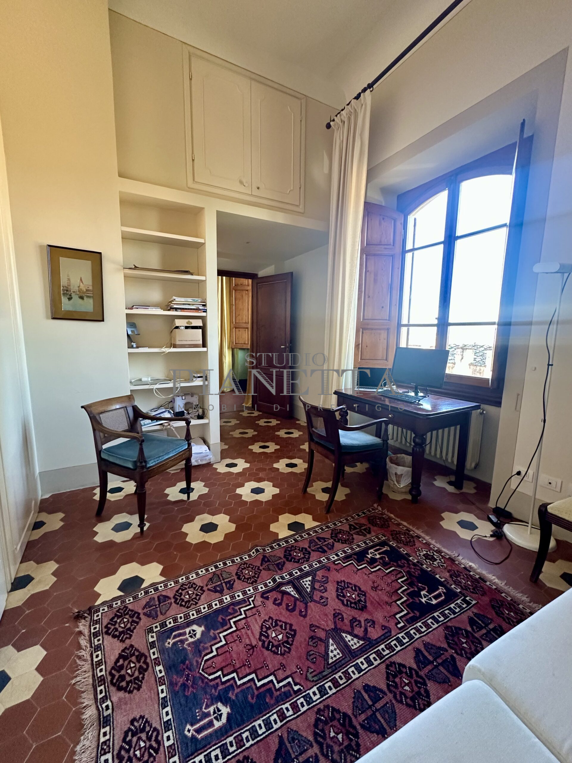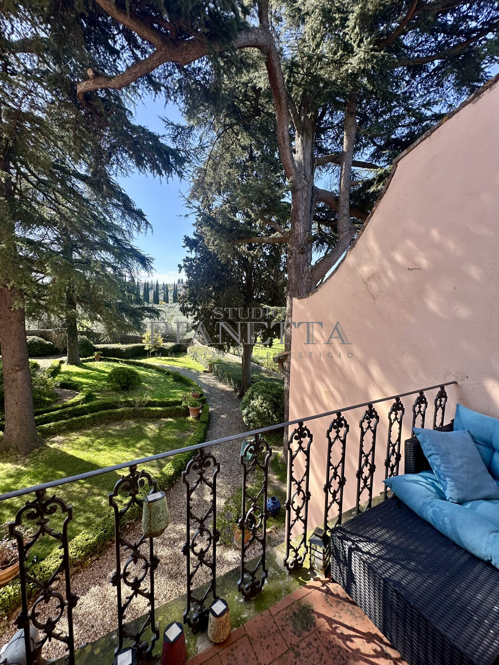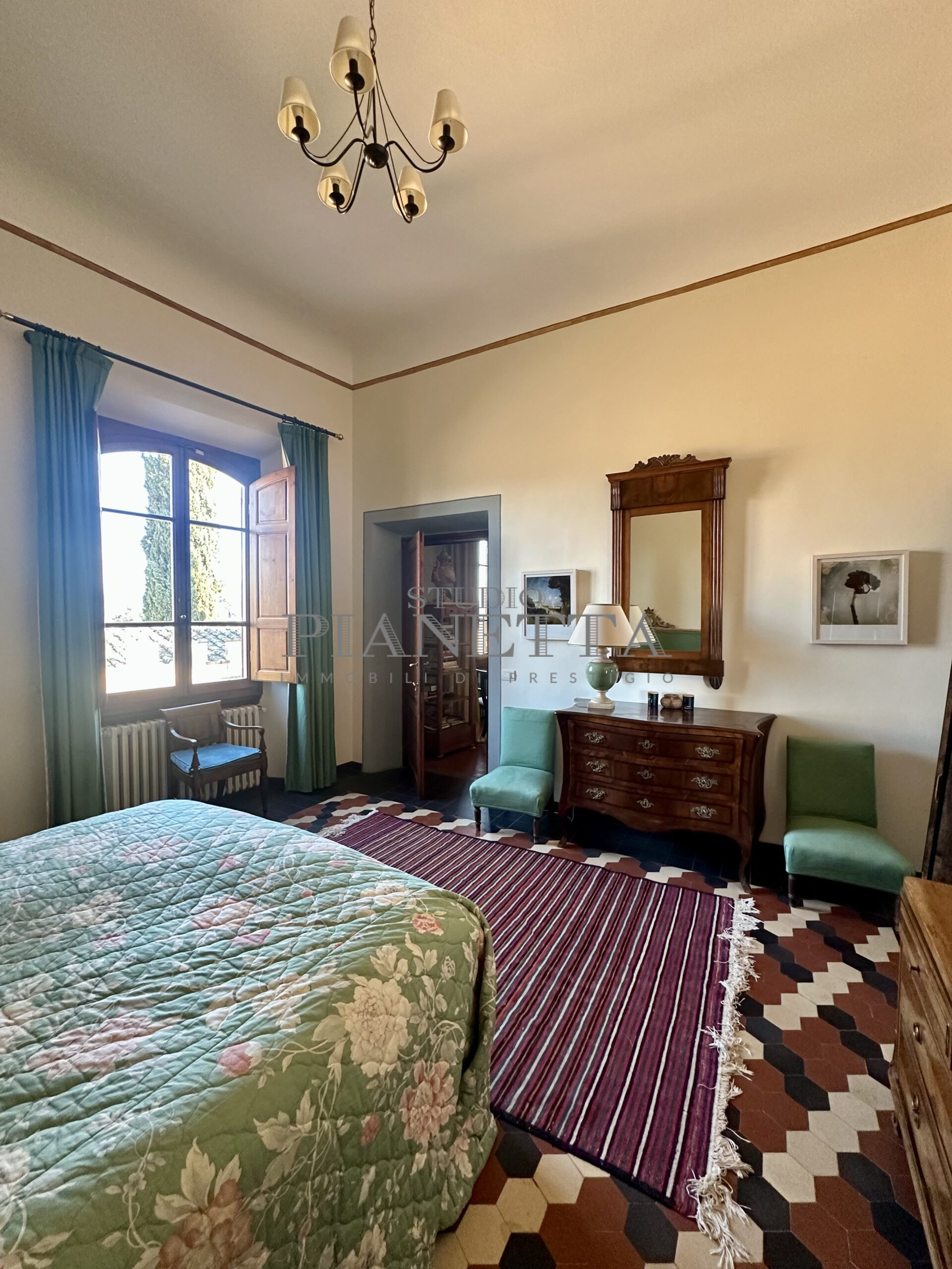 Disponibile da Aprile. Nei pressi del Pian de’ Giullari, affittasi elegante appartamento posto al primo piano di un'importante villa storica, finemente arredato con preziosi mobili d’epoca, pavimenti decorati, dotato di molta luce, con uno splendido e vasto panorama sulla città e sui suoi monumenti. L'immobile si compone di salone doppio, due camere matrimoniali ciascuna con bagno en suite e guardaroba, una camera singola, una grande cucina abitabile fornita di ogni accessorio con elettrodomestici di qualità. Completano l'immobile un terrazza panoramica abitabile, un giardino di uso esclusivo e posti auto. Termo singolo e fornito di sistema di aria condizionata. Sono richiesti solo clienti referenziatissimi e con reddito dimostrabile. No subaffitto.