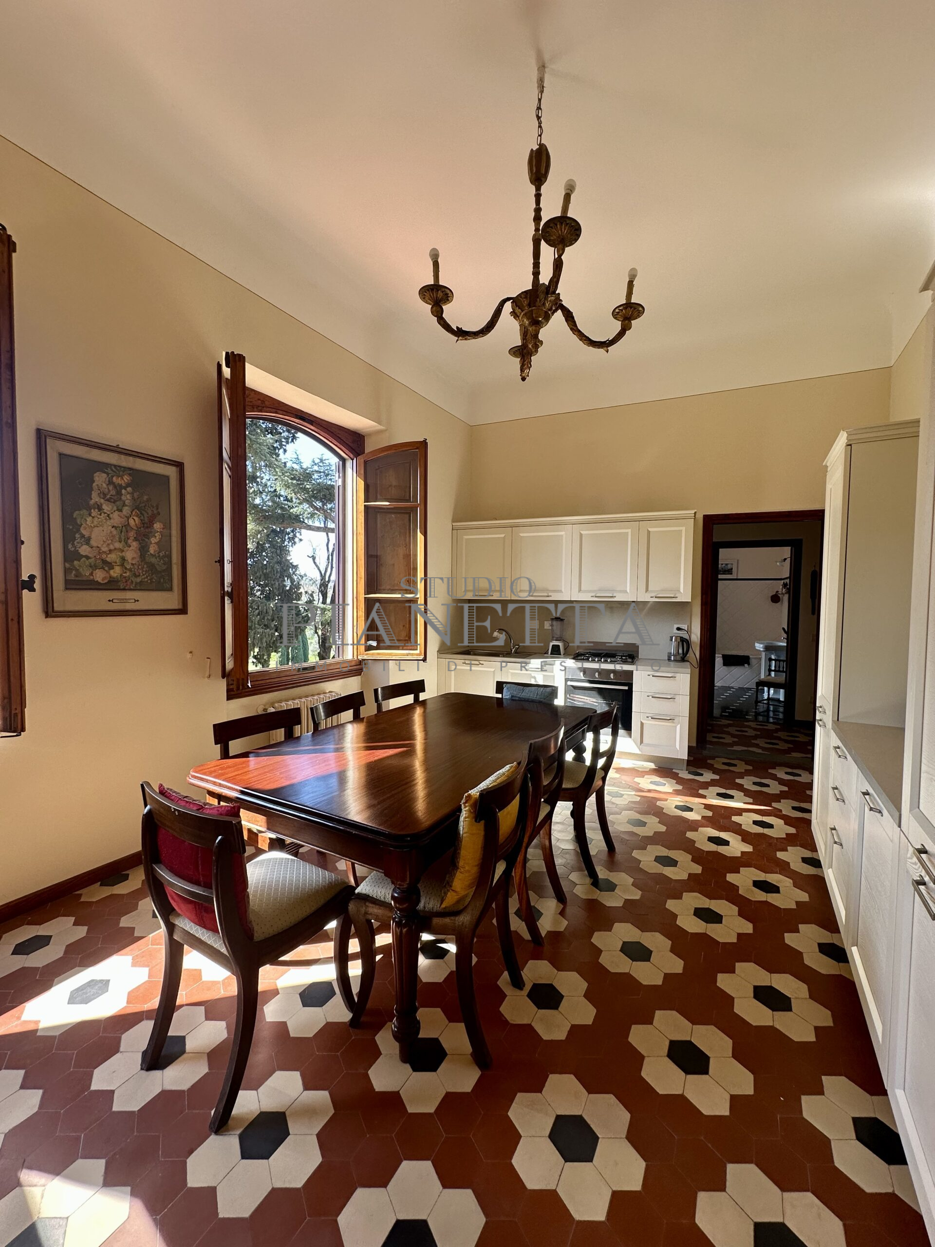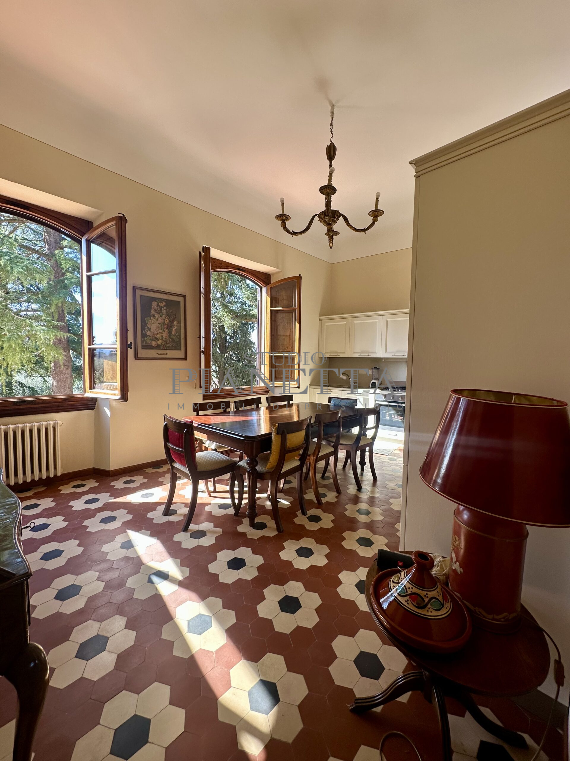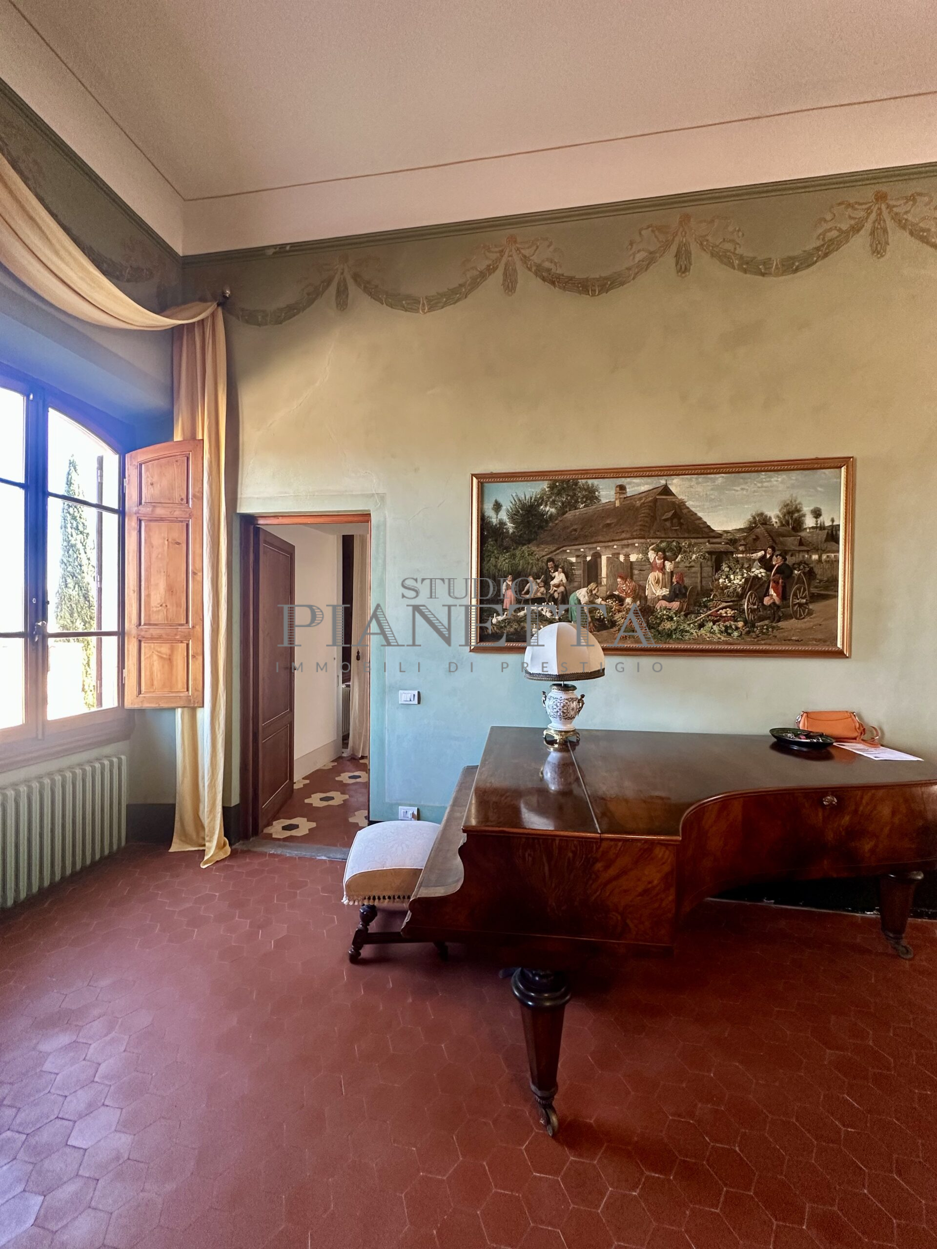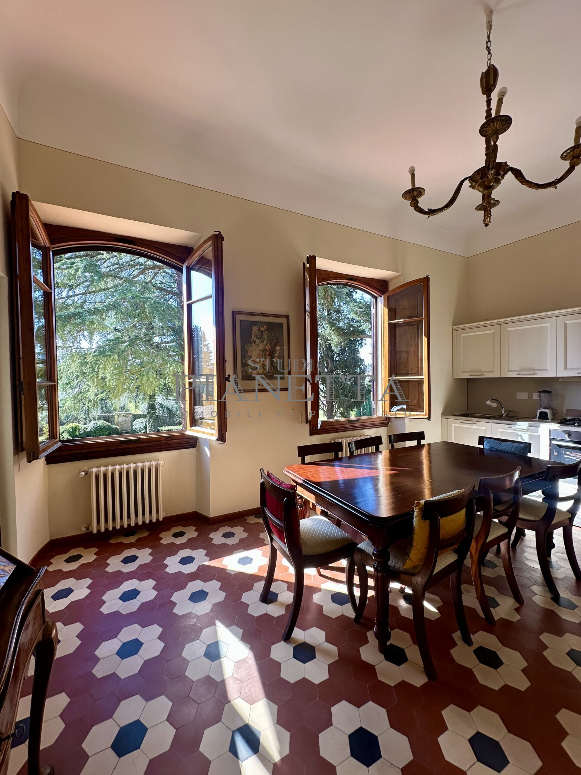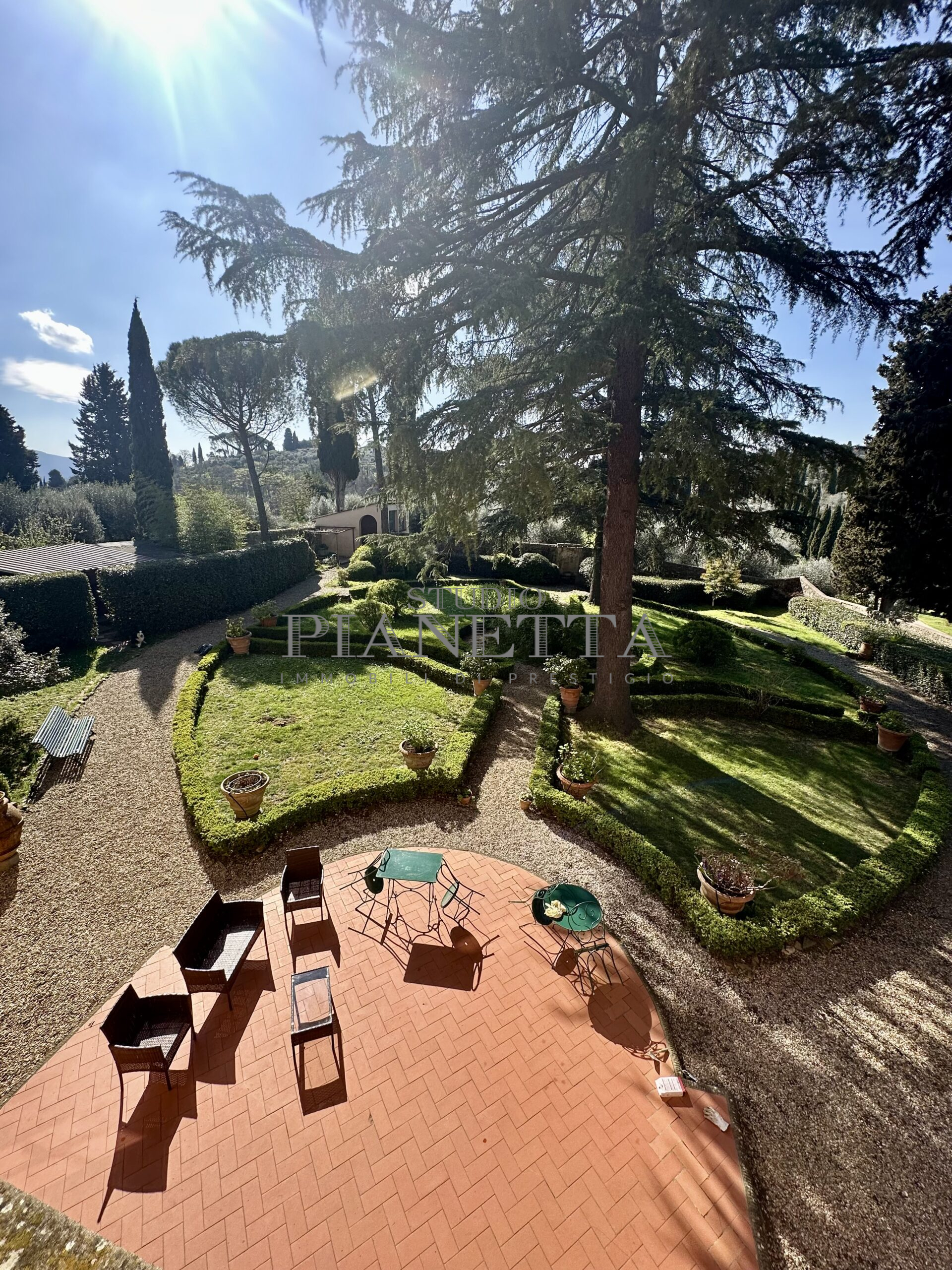 Disponibile da Aprile. Nei pressi del Pian de’ Giullari, affittasi elegante appartamento posto al primo piano di un'importante villa storica, finemente arredato con preziosi mobili d’epoca, pavimenti decorati, dotato di molta luce, con uno splendido e vasto panorama sulla città e sui suoi monumenti. L'immobile si compone di salone doppio, due camere matrimoniali ciascuna con bagno en suite e guardaroba, una camera singola, una grande cucina abitabile fornita di ogni accessorio con elettrodomestici di qualità. Completano l'immobile un terrazza panoramica abitabile, un giardino di uso esclusivo e posti auto. Termo singolo e fornito di sistema di aria condizionata. Sono richiesti solo clienti referenziatissimi e con reddito dimostrabile. No subaffitto.