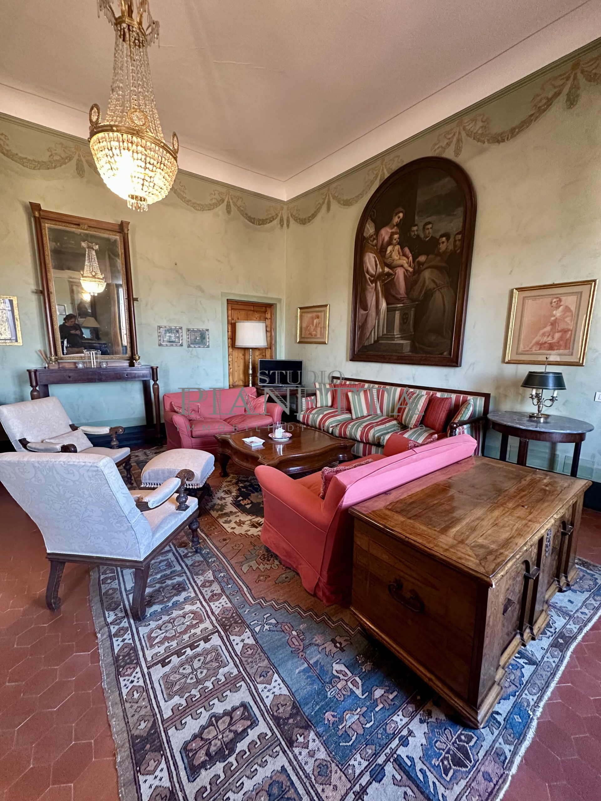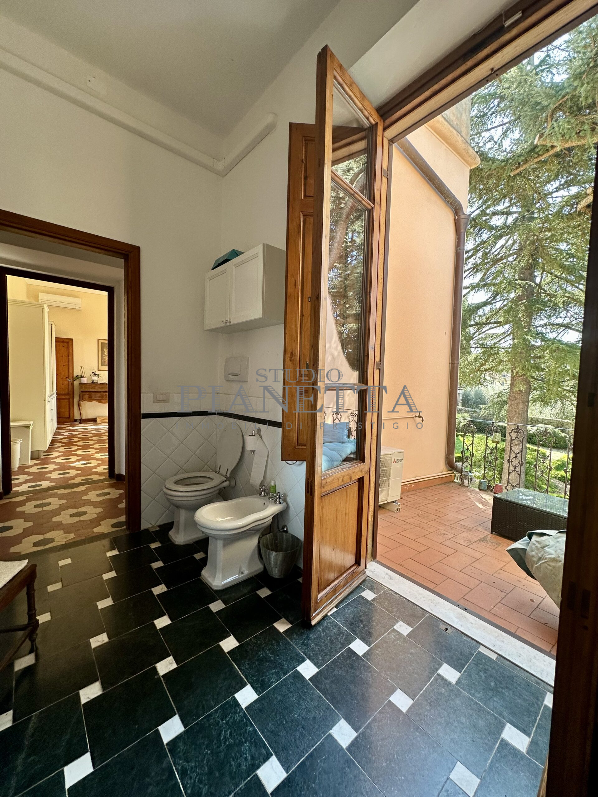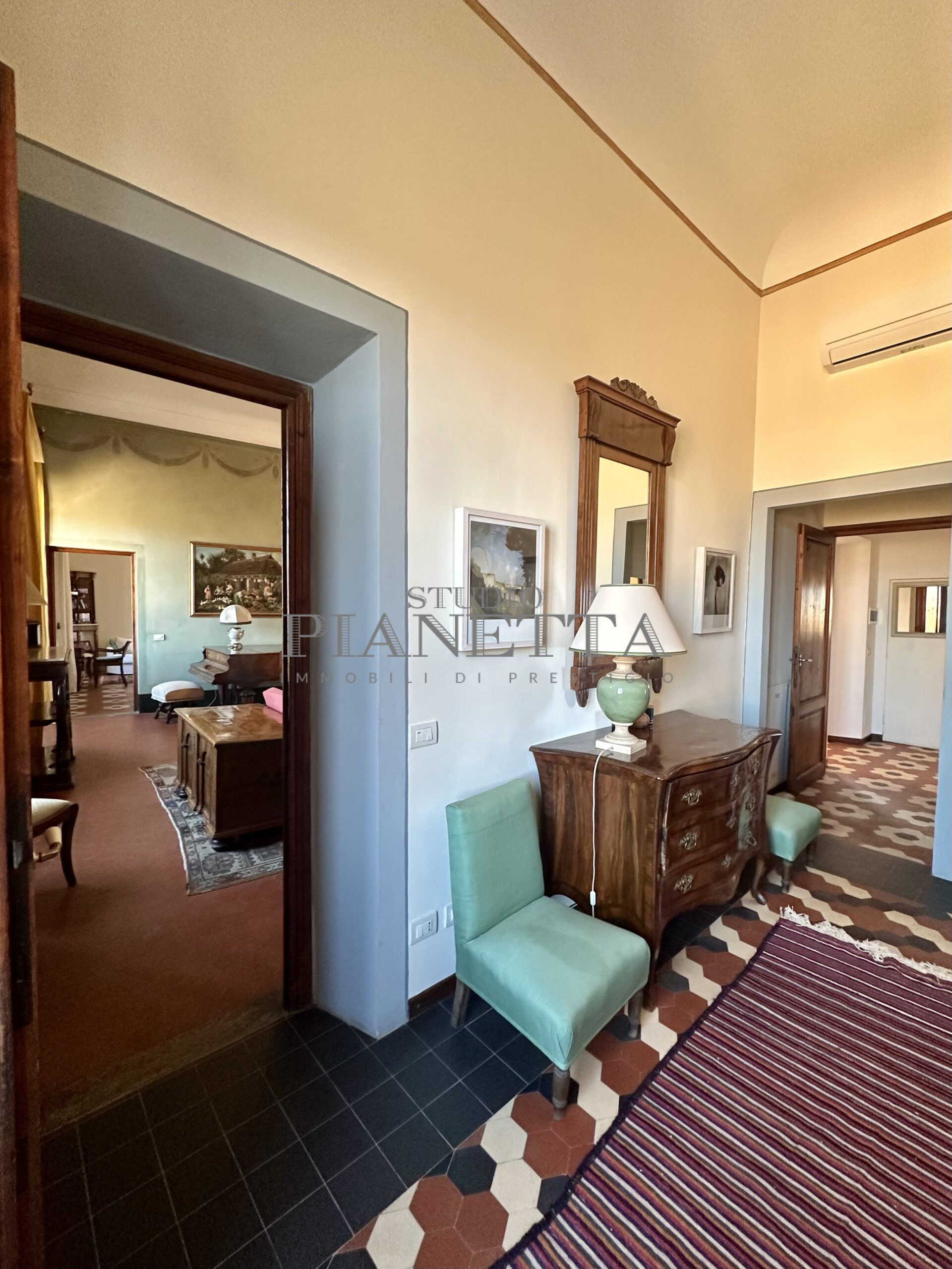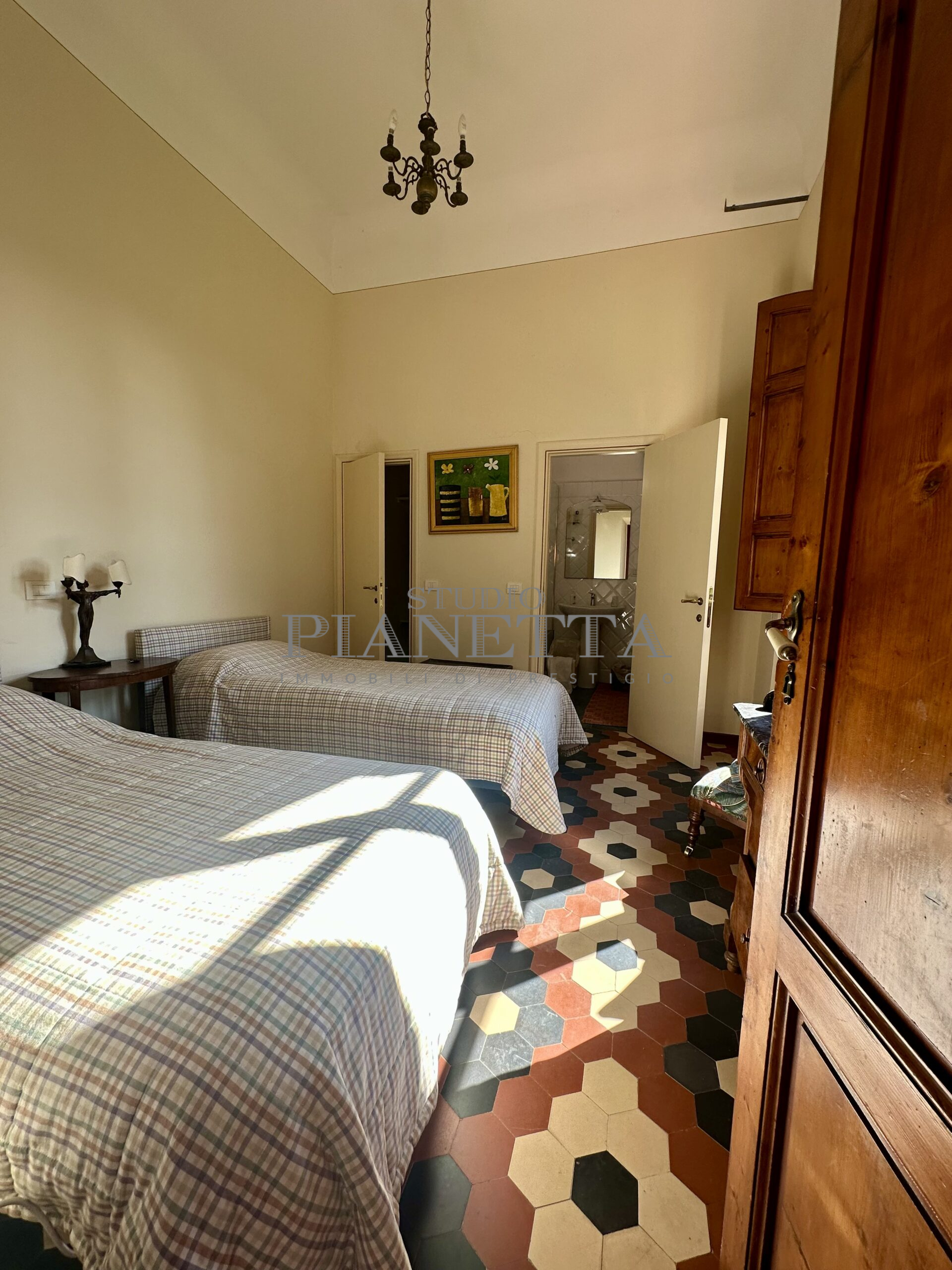 Disponibile da Aprile. Nei pressi del Pian de’ Giullari, affittasi elegante appartamento posto al primo piano di un'importante villa storica, finemente arredato con preziosi mobili d’epoca, pavimenti decorati, dotato di molta luce, con uno splendido e vasto panorama sulla città e sui suoi monumenti. L'immobile si compone di salone doppio, due camere matrimoniali ciascuna con bagno en suite e guardaroba, una camera singola, una grande cucina abitabile fornita di ogni accessorio con elettrodomestici di qualità. Completano l'immobile un terrazza panoramica abitabile, un giardino di uso esclusivo e posti auto. Termo singolo e fornito di sistema di aria condizionata. Sono richiesti solo clienti referenziatissimi e con reddito dimostrabile. No subaffitto.
